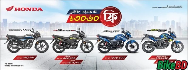 In this offer, Bangladesh Honda Private Limited (BHL) is giving a maximum of 20,000 BDT cashback on Honda CB Hornet 160R bike. They are also giving 5,000 BDT cashback on Honda Livo.With this offer, Honda is also providing cashback offer on four other model. In this offer, customers will get 3060 BDT fee on their driving license as a cashback offer.