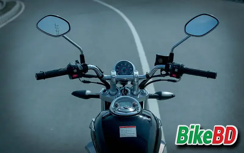 The bike has raised handlebar which is very comfortable to sit on & with the legs moving forward the bike will give the impression of a true cruiser bike. I loved how they gave the chrome plating on the rear view mirror.