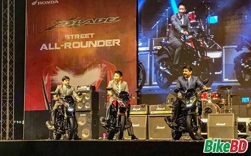 First of all, there was a display of All the available colors of X Blade 160 and then there was a display zone, where BHL had all their available models displayed for everyone.honda x blade test rideThere was a facility of Test Riding The Bike, where anyone who has a valid driving license can test ride the brand new X Blade and get a feel about how this bike behaves, and how much it suits the rider. BHL provided helmet and full safety gear for the test riding to ensure the full safety of the rider.honda x blade reviewAnyone who was interested in the X Blade had the facility to pre-book the bike or any other Honda models from Honda Motorcycle Showrooms in Dhaka representatives present at the venue. They were gifted attractive gifts along with every booking done at the event.honda x blade 160The most thrilling part of the show was the Gymkhana. Gymkhana is a type of bike sports where the skills and the agility of the rider matter the most. It was a track full of Zigzag and the top three riders who were able to finish the course in the lowest amount of time without putting their foot down or touching any cone was given attractive prizes as winners of the event.gymkhana stuntThe First Day of the Event began by the inauguration of the program, and BHL Managing Director and CEO Mr. Himihiko Katsuki gave a speech about the achievements and goals of Honda in Bangladesh. After that, BHL Managing Director and CEO Mr. Himihiko Katsuki, Senior Vice President & Sales Consultant Mr. Naresh Kumar Rattan and BHL Officials Unveiled the brand New Honda X Blade 160 in Bangladesh.x blade price in bd
