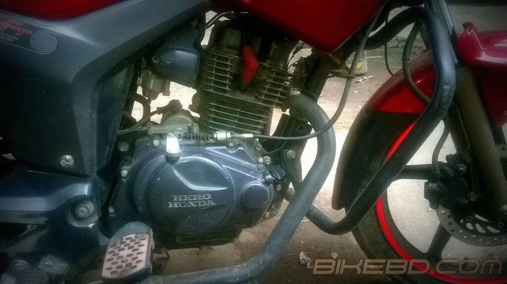 The beast is blazing red colored. You know it is a 150cc bike with 5 speed transmission and its specification is quite well known to all biker. So I am comfortable not to go for the techs.
