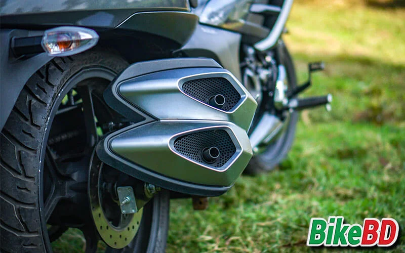The bike has halogen headlight, muscular fuel tank, speedometer borrowed straight from Gixxer, it also offers low riding position and the footrest are moved forwards as you can find in a cruising motorcycle, for starter it will make you a bit uncomfortable but once you ride it for 3-4 days straight you will get used to it. I particularly like the twin exhaust, yes it is big and eats up lots of space on the right-hand side of the bike but if you look from a distance it looks stunning. The bike although has a low riding position but I am amazed how they still managed to have a 170 mm ground clearance. Even riding with a pillion it is a bit hard to hit the high-speed breakers in Dhaka city.