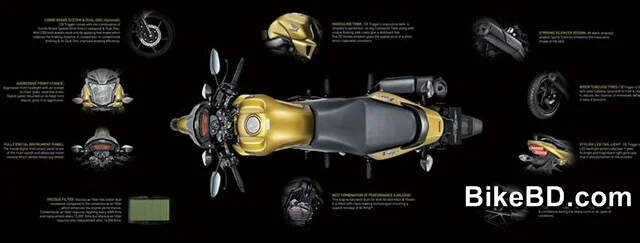 On counter Yamaha SZ-RR Version 2.0 comes with Yamaha Blue Core Technology. The blue Core also ensure competitive blend of power, fuel efficiency and nature friendly emission. Moreover its new aerodynamic shape made it capable to stay much closer with Honda CB Trigger on the road.