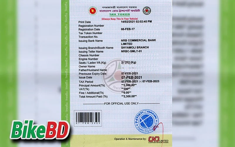 টাকা জমা দেয়ার পর আপনার হাতে আপনার ট্যাক্স টোকেন দিয়ে দেয়া হবে। আপনি যদি একটু খোঁজ নিয়ে যেতে পারেন এবং আপনার আশেপাশের কোন ব্যাংকগুলো এই টাকা জমা নিয়ে থাকে এটা জানেন তাহলে আপনি ঝামেলা ছাড়া বিআরটিএ তে না গিয়ে আপনার বাইকের ফি সংক্রান্ত কাজগুলো সেরে নিতে পারবেন।