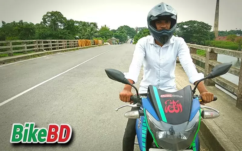 সকাল হতেই বাইক নিয়ে বেরিয়ে পরি, সেদিন প্রায় ৮০ কিলো রাইড করেছিলাম। আমার বাইকটি নীল কালারের, এর পেছনের চাকার সাইজ ১২০-৮০/১৭ যা আমি নিজে ইন্সটল করছি। এবং লুকিং গ্লাস ও আমি ইনেস্টল করি ।
