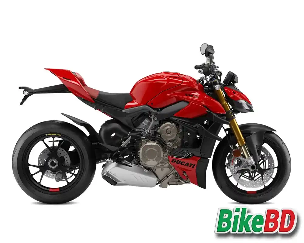 Ducati Streetfighter V4 price is not available in Bangladesh but in India this bike price is 22,15,000 INR. This Bike is powered by 1000 Cc, which generates a maximum power of 205.17 BHP@ 13000 rpm, and its maximum torque is 123.00 NM@ 9500 rpm. Ducati Streetfighter V4 mileage we got 13 Kmpl. It has a Dual Channel ABS Braking system with Tubeless tyre. Seat Height is 845 mm, and Weight is 197 KG. Top Speed: we got 299 KMPH.